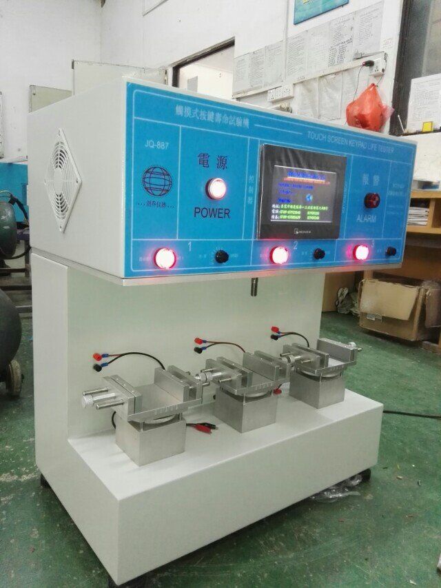 本機機械結構:采用臺灣變頻調速電機凸輪結構配合日本THK精密線性滑軌完成線性上下動作,電器控制部分:采用臺灣威倫觸摸屏+臺灣臺達控制器(PLC).可對計算機、手機、記事本、鍵盤等小型消費電子產品做壽命測試及開關好壞測試。