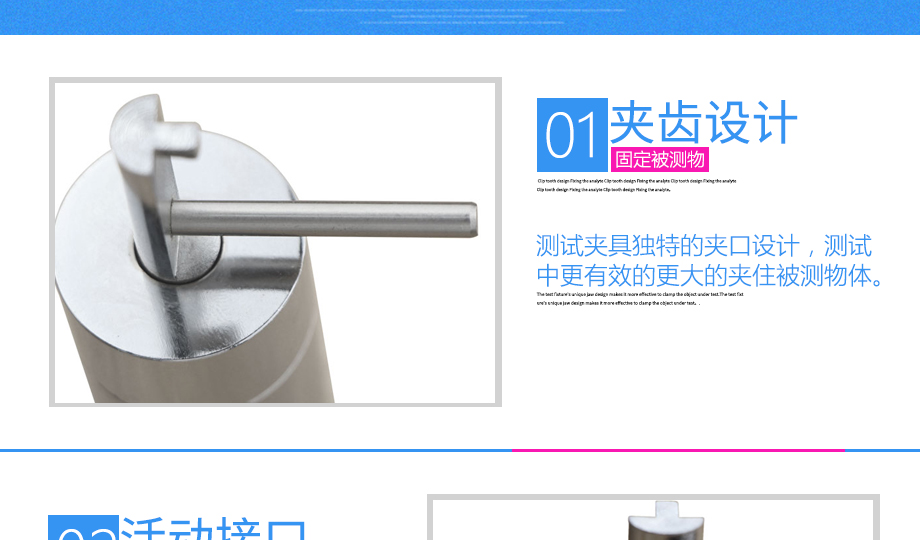 產(chǎn)品型號:JQ-017 品牌:劍 喬 用途:拉鏈夾具適用范圍:拉鏈材料的拉力,破壞力測試。