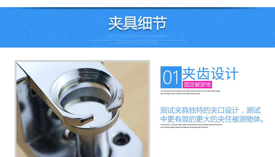 產(chǎn)品型號:JQ-015 品牌:劍 喬 用途:紐扣夾具適用范圍:紐扣、玩具等材料的拉力,破壞力測試。